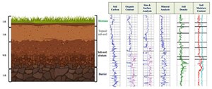 To account for topographical and lithological deviations and heterogeneity, up to 25 core samples/100 acres were extracted, 24 more than the conventional sampling process. Unlike the traditional approach, samples also were taken 10 ft or deeper, well below the root systems of most crops and trees. As noted by Sothe, et al, evaluation at depth allows for a more adequate prediction of SOC concentration.6