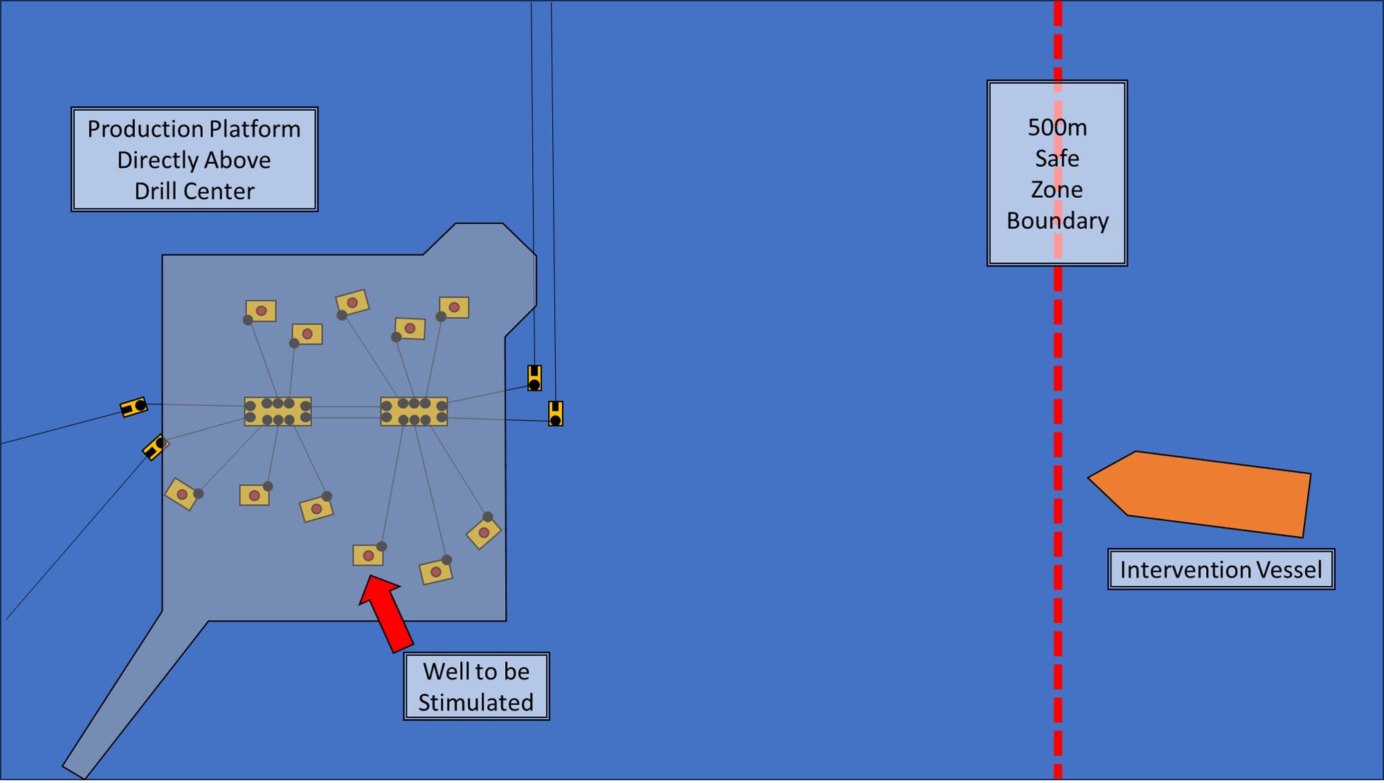 Subsea operators have long been limited in the options they have to stimulate subsea wells within a drill center while a mobile offshore drilling unit (MODU) or production facility is moored overhead. Tieback wells have the advantage of being far enough away from the facility to allow an intervention vessel to arrive onsite without a major disruption of production and drilling operations, but the wells “under the shadow” of the facility require a rig move (via mooring adjustments) and platform-based, direct vertical access intervention riser systems—equating to extensive deferred production of many wells to improve production of a single well.