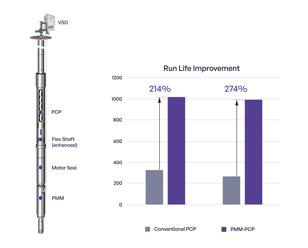 Beyond extending operational life, the system also delivered significant financial benefits over a three-year period. Energy consumption was reduced 16%, saving 4 kWh per well, while deferred oil production losses were eliminated, resulting in annual savings of $110,000. Additionally, intervention costs were reduced by $245,000, as the operational period was extended from less than one year to nearly three years. By eliminating rod-related failures, the PMM-PCP system further enhanced reliability, validating its higher initial investment as a more efficient and sustainable long-term solution.