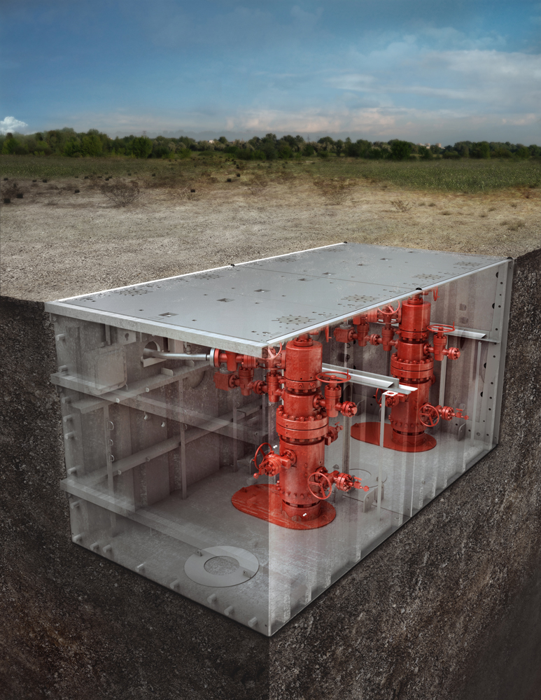Relocating the wellhead and production tree below grade removes these obstructions and provides a flat working surface across the pad. This unobstructed pad access allows completion engineers to design more efficient and flexible fracturing layouts.