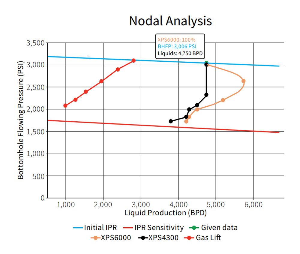 Optimal pump design drives production gains. In one field application, comparative lift modeling between two ESP designs showed that at peak performance, a loss of 1,000 bpd was expected with the smaller pump. This discrepancy in pump sizes would disappear, if the production rate were to drop to 4,000 bpd, which is a suboptimal production rate for the well.
