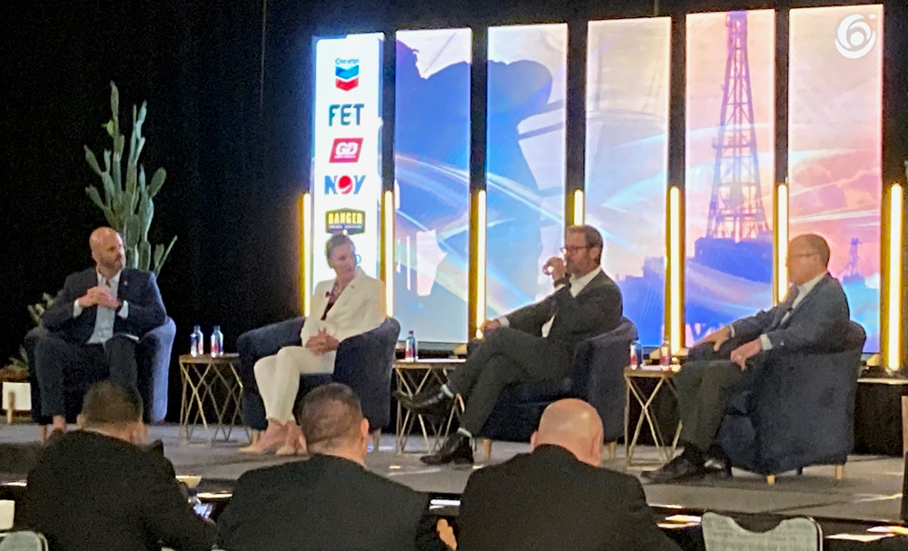Last, but not least, the following week was the Energy Workforce & Technology Council’s (EWTC) Annual Meeting in Tucson, at the Loews Ventana Canyon Resort, nestled up against the mountains on the north/northeast side of town. Aside from the fine location, the EWTC did a good job of lining up operator participants for the offshore and onshore panels (Fig. 7), as well as the Technology & Innovation panel, and the Market Outlook presentation. Again, much like the CERAWeek speakers, participants were optimistic about the global outlook but still taking a wait-and-see attitude, given the Middle East situation. Of special note, the EWTC’s Platinum Award, which recognizes lifetime achievement and contributions to the industry, was given to Chuck Davidson, partner at Quantum Capital Group (and former CEO of Noble Energy), and Rick Muncrief, former President and CEO of Devon Energy (and former Chairman and CEO of WPX Energy). Both award-winners are well-deserved!