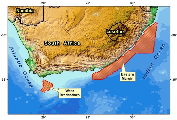 The survey areas are located offshore Cape Agulhas (West Bredasdorp area) and offshore Durban (Eastern Margin area). Data acquisition will commence in January 2016 and is anticipated to take four months utilizing specialized geophysical survey aircraft. The project has received significant prefunding from the oil industry; survey data and interpretation products will be available for licensing in mid-2016.