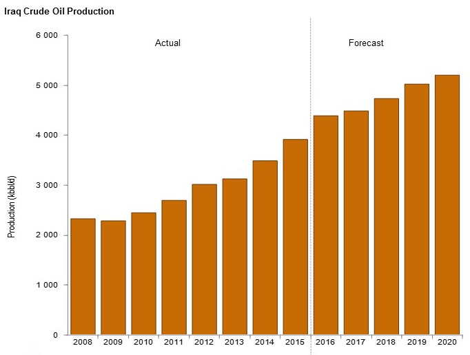 OSLO, Norway -- Iraqi crude oil production for 2015 was approximately 3.9 MMbpd, up 12% from 2014, according to analysis from Rystad Energy.