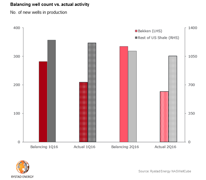 HOUSTON -- Rystad Energy expects horizontal oil completion activity in U.S. shale plays to outpace drilling operations by 30% in second-half 2016, resulting in the contraction of the DUC inventory by 800 wells.