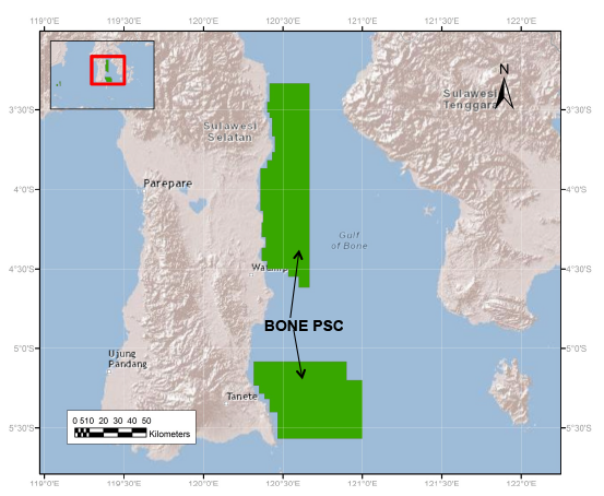 Bone PSC is operated by Mitra Energy (Indonesia Bone) Limited, a wholly owned subsidiary of the Company, with a 60% working interest. Azimuth Indonesia Limited holds the remaining 40% working interest. Agreement has been reached to transfer the 60% working interest and operatorship to Azimuth, subject to government approval.