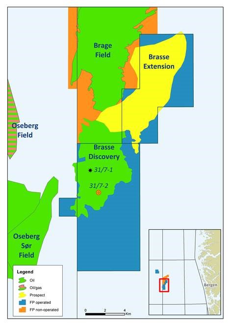 The Brasse discovery is located within tie-back distance to existing infrastructure: 13 km to the south of the Brage field platform, in which the Company holds a 14.3% working interest and 13 km to the south east of the Oseberg field Center.