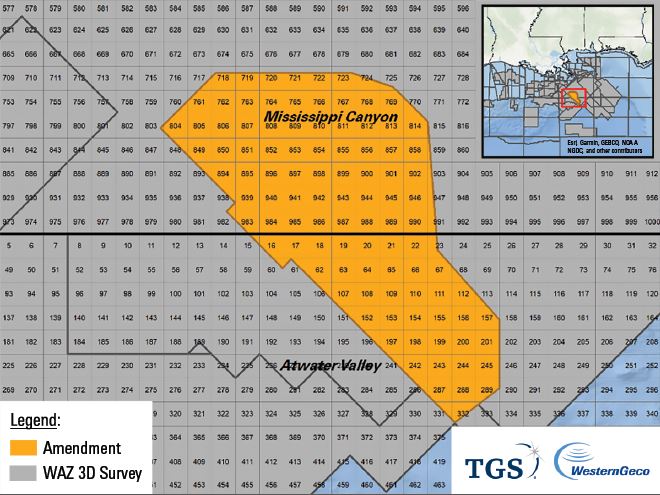 The project, named “Amendment,” will comprise acquisition of a 2,350-km2 multi-client seismic survey in the Mississippi Canyon and Atwater Valley protraction areas of the U.S. Gulf of Mexico. This prolific area includes open acreage, existing producing assets and new discoveries. Seismic data will be acquired using Fairfield Geotechnologies 4C nodal acquisition technology with operations expected to commence in fourth-quarter 2018. TGS and Schlumberger will apply their full azimuth processing expertise and expect to deliver final data to customers in first-quarter 2020.