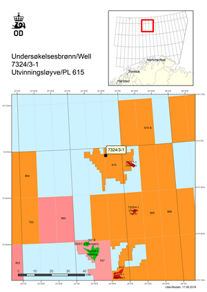The well was drilled about 15 km northwest of discovery well 7325/1-1 (Atlantis) and 370 km north of Hammerfest.