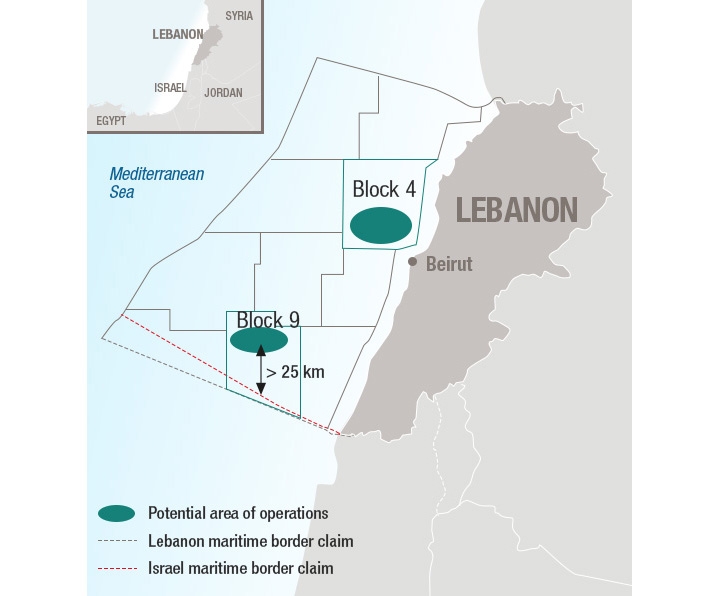 As for Block 9, Total and its partners are fully aware of the Israeli-Lebanese border dispute in the southern part of the block that covers only very limited area (less than 8% of the block’s surface). Given that, the main prospects are located more than 25km from the disputed area, the consortium confirms that the exploration well on Block 9 will have no interference at all with any fields or prospects located south of the border area.