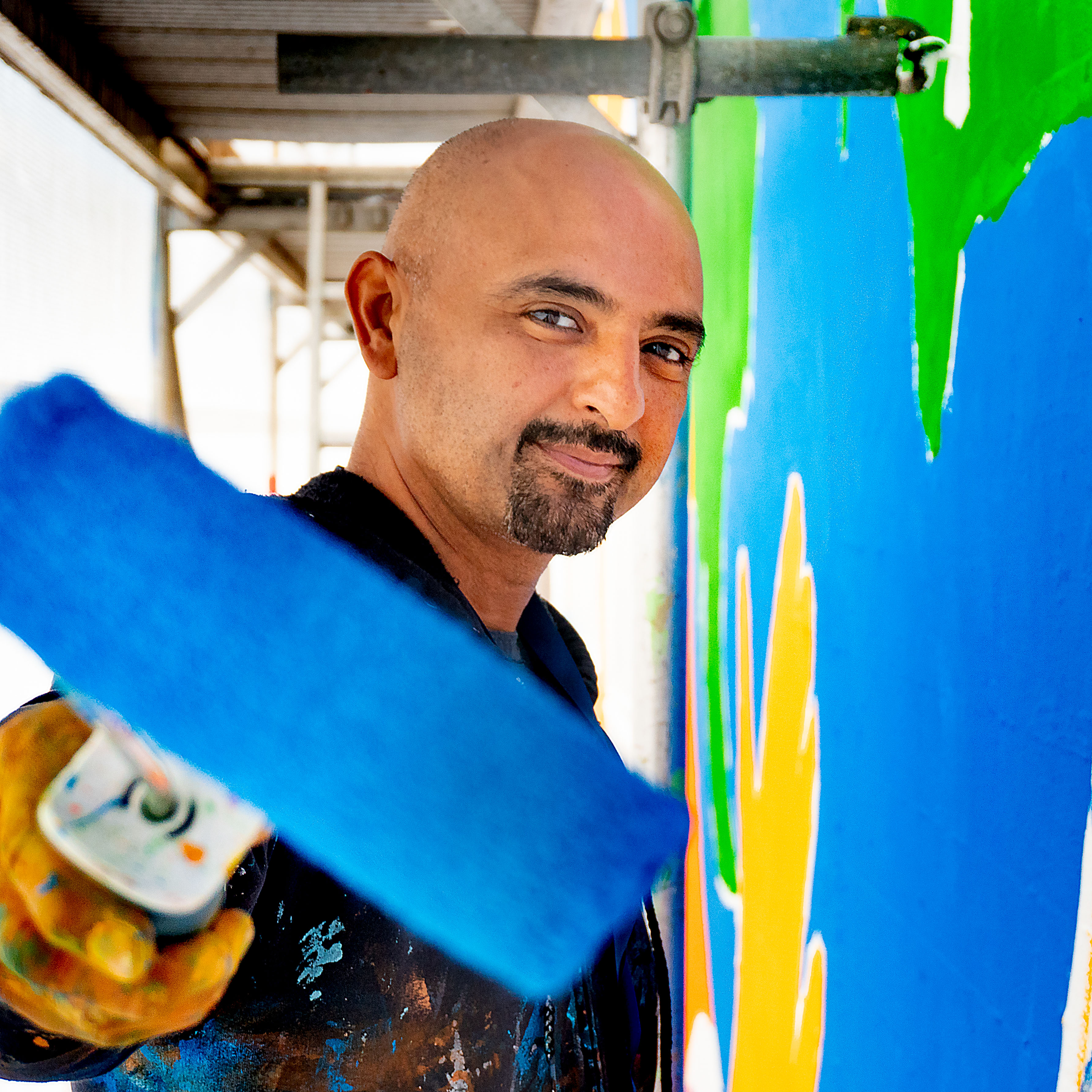 Mario E. Figueroa, Jr. (aka GONZO247), was born and raised in Houston, Texas. GONZO was exposed to graffiti and began his pursuit as a self-taught artist in 1985. He opened Aerosol Warfare Gallery, founded The Graffiti & Street Art, Art Museum of Texas (2015), produced an Aerosol Warfare video series, established a Houston Wall Of Fame (the city’s first largest art production of its kind), has participated in over 50 exhibitions and art projects, while also working with top brand campaigns that speak to urban communities. He has evolved his studio art from aerosol on canvas to aerosol on layered plexiglass using a backwards painting technique. He creates art on a local, national and international level. He is well known as an upstanding artist and an early-on pioneer in the graffiti and street art genres in Houston, Texas; he manages Aerosol Warfare and continues to create art, murals and team-based productions.