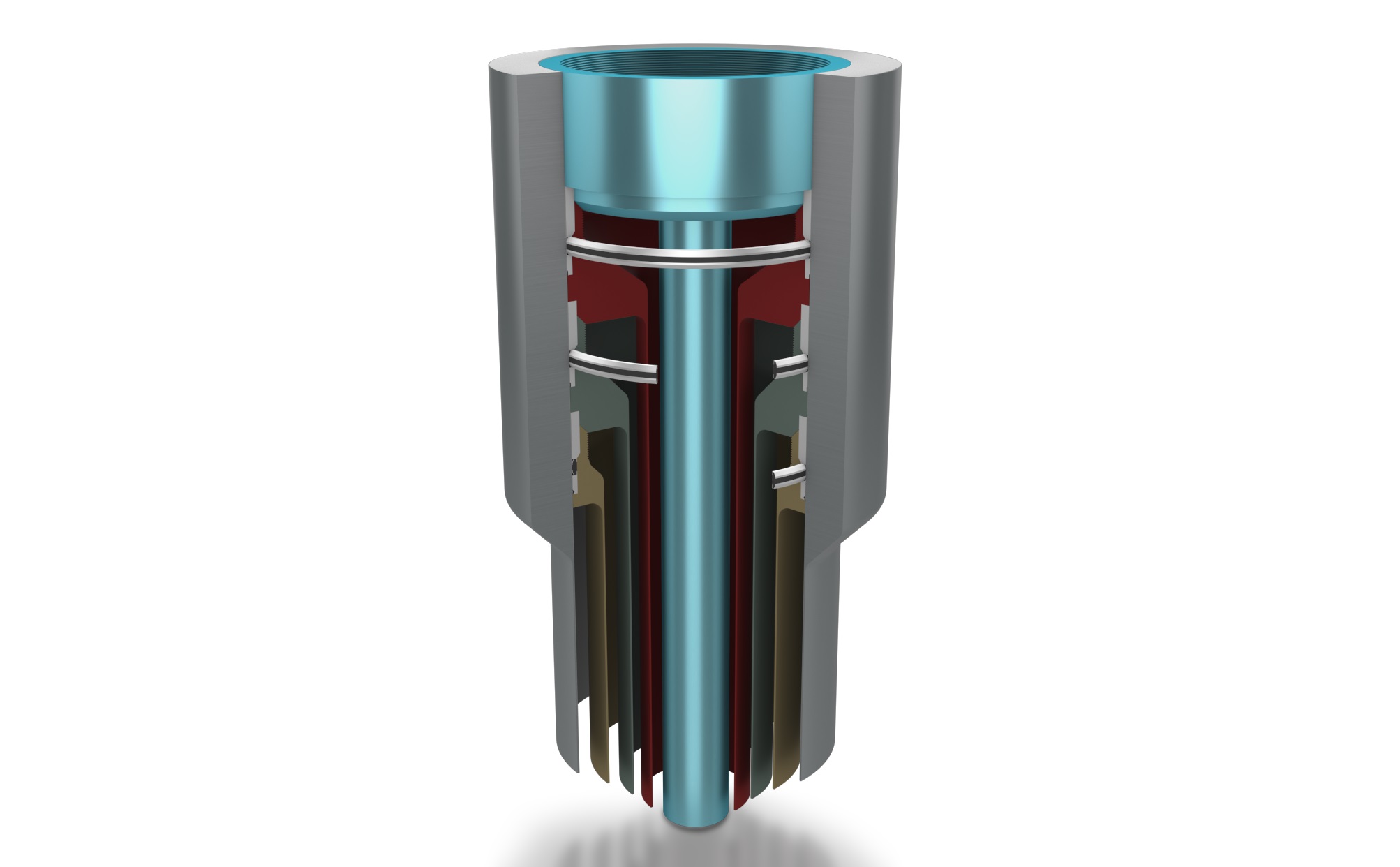 Sealing in the elastomer-to-metal design solution is achieved by controlled deformation of the elastomer and metal end cap elements during installation and operation. Optimal stress distribution throughout the elastomer body is modelled through Finite Element Analysis (FEA) to ensure appropriate design standards are applied to each customer’s unique application. Extrusion resistance is provided by the specially designed metal end caps that provide positive metal-to-metal sealing interference with the hardware upon assembly and conform to any potential extrusion gaps under pressure.