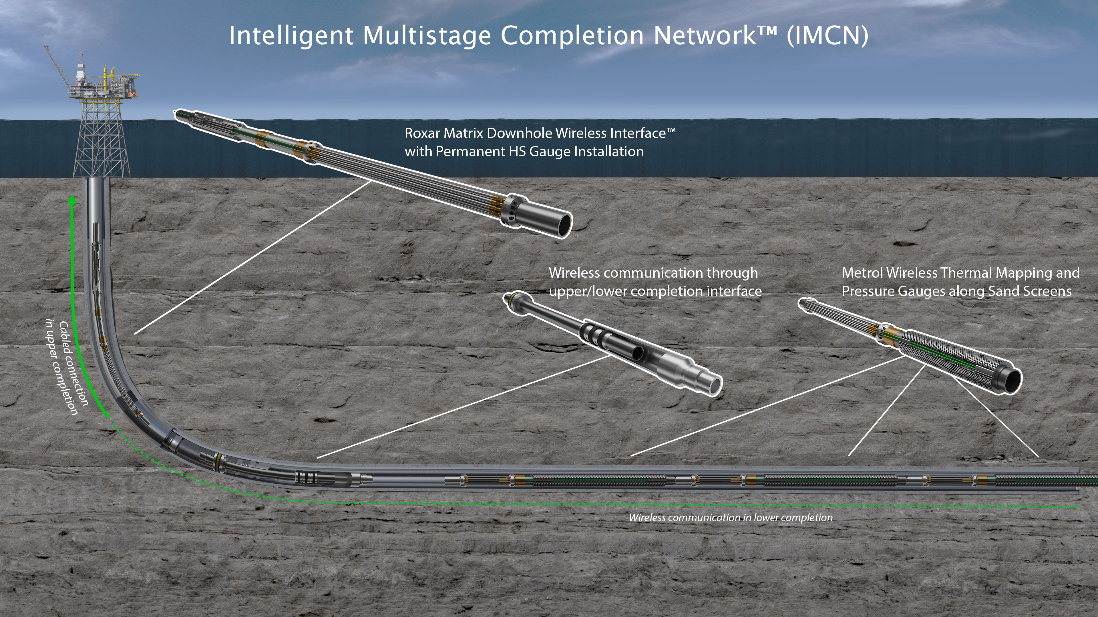 The Intelligent Multistage Completion Network builds on the capabilities of the existing Integrated Downhole Network that has been installed in wells worldwide and uses wireless telemetry to enable communication with sensors and controls located at the reservoir. Key benefits of the new downhole reservoir network solution include:
