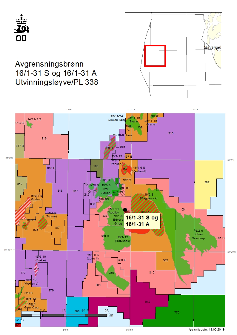 The wells were drilled about 4 km northeast of the Edvard Grieg platform in the central part of the North Sea, 190 km west of Stavanger.