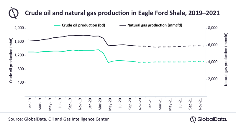 GlobalData’s latest report, ‘Eagle Ford Shale in the US, 2020’, projects that the gross crude oil production in this play would average at 1,017 thousand barrels per day (mbd) in 2021, down from 1,130 mbd in 2020. The gross natural gas production also may decline to 5,873 million cubic feet per day (mmcfd) in 2021, down from 6,327 mmcfd in 2020.