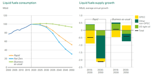 Under BP’s business-as-usual scenario, peak demand doesn’t mean a dramatic demand drop-off by 2050. The other two scenarios are far more drastic in this regard.