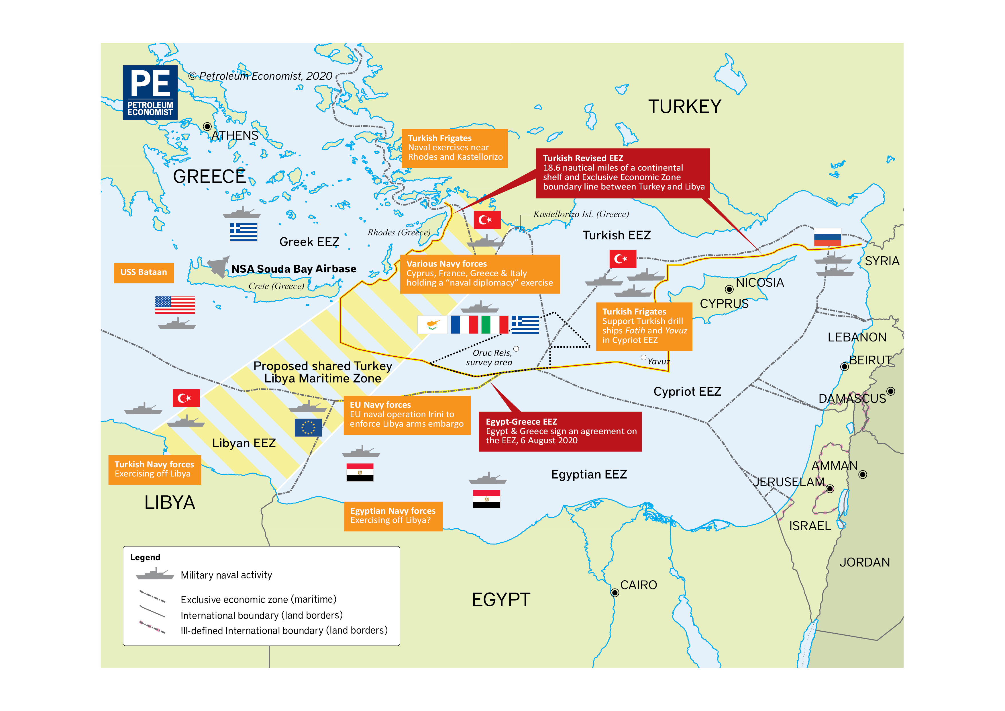 Greece, Cyprus and other EU states have sharply criticized Turkey’s recent moves aimed at bolstering its claims to energy deposits. Late last year, Ankara won the backing of war-torn Libya’s United Nations-recognized government for a controversial new sea boundary between the two countries. It covers waters contested by other governments, including Greece.