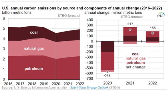 U.S. projects climbing energy-related CO2 emissions in 2021 and 2022