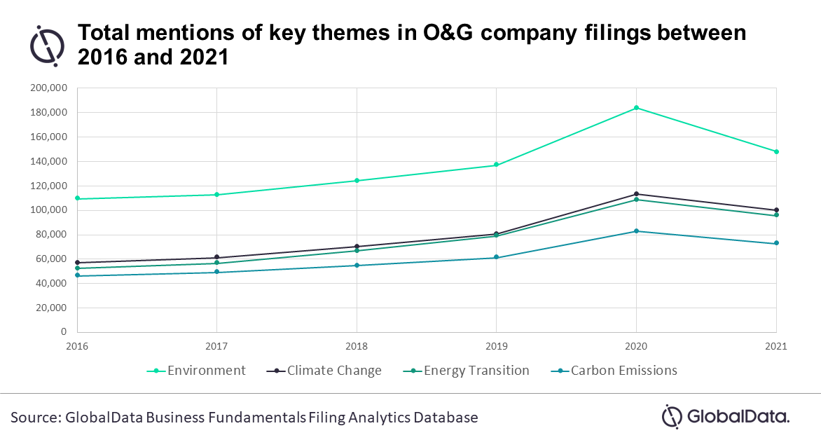 Rinaldo Pereira, Business Fundamentals Analyst at GlobalData, comments: “When looking at key themes being discussed by OIL AND GAS executives, ‘Environment’, ‘Climate Change’, ‘Energy Transition’ and ‘Carbon Emissions’ are all high up on the agenda.”