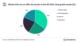 Over 35% of the acreage available in licensing rounds that are either open or scheduled to close in H2 2021 are located in shallow water, while ultra-deep water and deepwater acreage account for 24% and 19%, respectively, according to GlobalData, a leading data and analytics company.