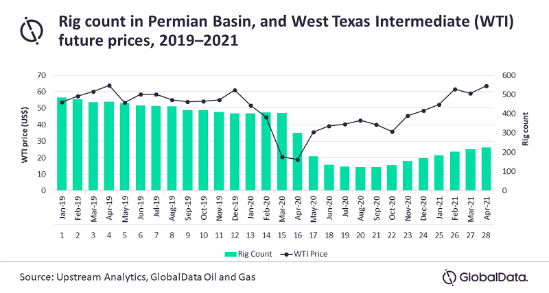 Ms Doh concludes: “Despite West Texas Intermediate (WTI) price rebounding to the pre-pandemic levels, rigs are still slow in catching up. Permian Basin rig count dropped to its lowest point in August 2020 at 117 rigs. Since September 2020, the basin has seen a slow increase in rig count, about 7%. As of June 2021, there were 235 rigs operating in the Permian Basin compared to only 135 rigs a year ago in June 2020. GlobalData expects oil and gas companies to refocus on their core assets in the Permian Basin and ramp up the drilling and completion activities.”