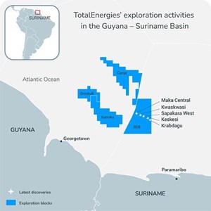 TotalEnergies and APA Corporation have made a significant new oil and associated gas discovery at the Krabdagu-1 well, in the central area of Block 58, offshore Suriname. This follows previous discoveries at Maka, Sapakara, Kwaskwasi and Keskesi, and the successfully tested Sapakara South-1 appraisal well.