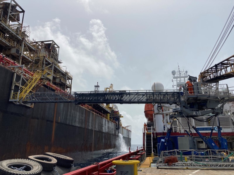 In the coming years, an A-type gangway will ensure smooth and continuous crew change operations from the MMA Privilege to the FPSO. Alongside its flagship system, Ampelmann will provide technical and logistical assistance. Trained Ampelmann operators, together with a 24/7 support hotline, will facilitate continuous work on the FPSO and ensure all-round increases in workability.