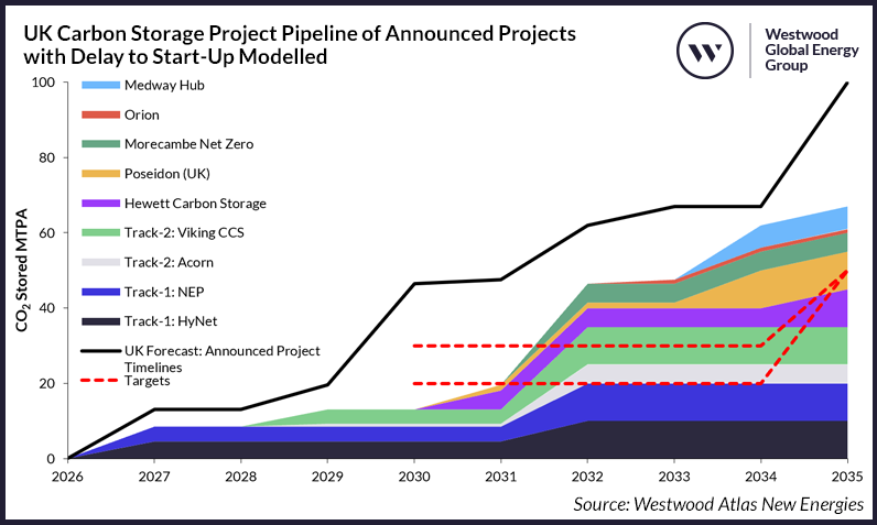 Catherine Horseman-Wilson, Senior Analyst - NW Europe, Westwood continues, “The industry is grappling with a series of challenges, from funding delays and congested work programs, to access to CO2 and co-location and infrastructure re-use difficulties, so the likelihood of delays can’t be ignored. The UK has a significant opportunity, with a strong capability to surpass its targets, but contingency planning will be a crucial element in securing its full potential, particularly in ensuring the strict adherence to schedules and maintaining a reliable CO2 supply.”