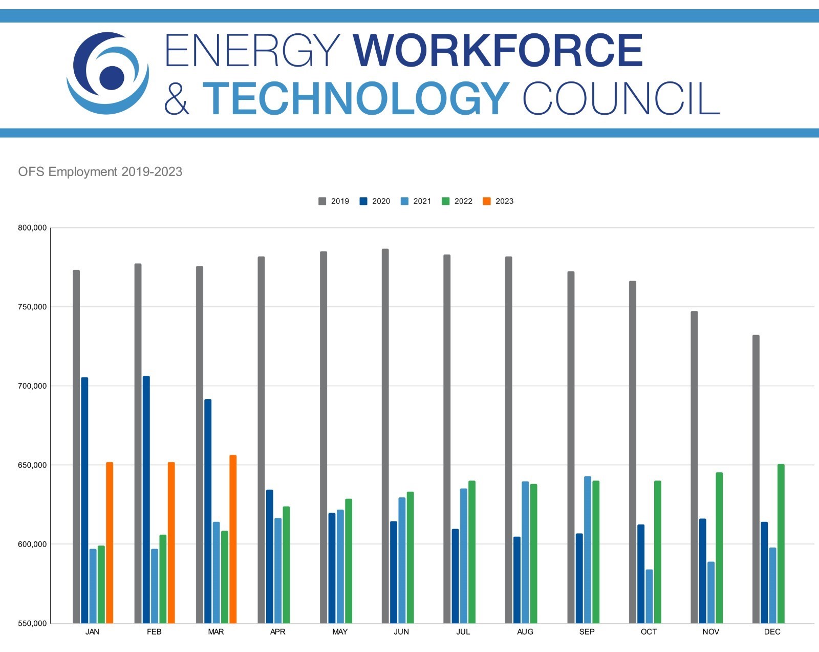 (WO) — Employment in the U.S. oilfield services and equipment sector increased by 2,907 jobs to its highest level since March of 2020 to reach 656,368 in March, according to preliminary data from the Bureau of Labor Statistics (BLS) after adjustments to February numbers and analysis by the Energy Workforce & Technology Council (Energy Workforce).
