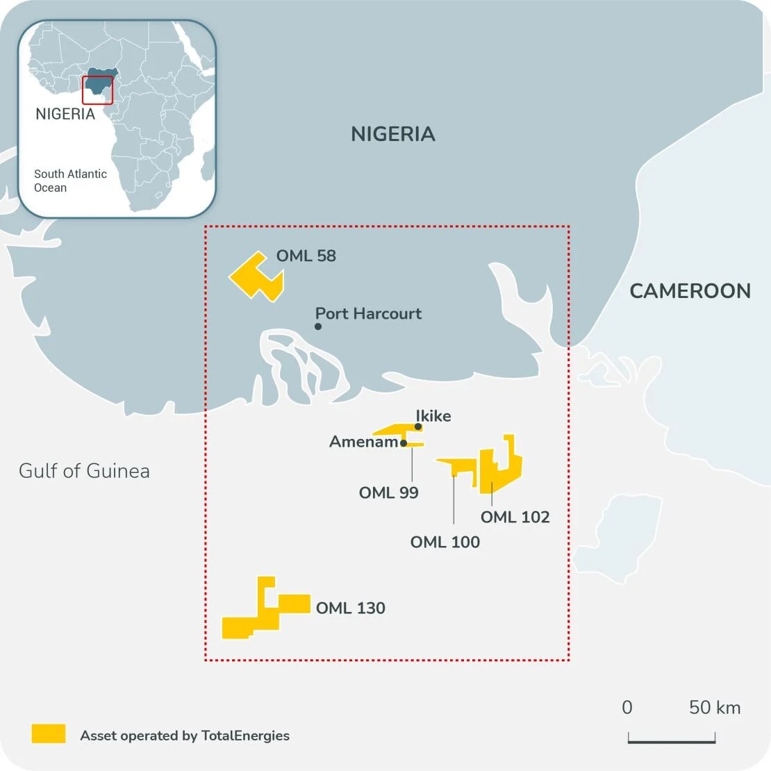 TotalEnergies Upstream Nigeria Limited operates OML 130 with a 24% interest, in partnership with CNOOC (45%), Sapetro (15%), Prime 130 (16%) and the Nigerian National Petroleum Company Ltd as the concessionaire of the PSC.