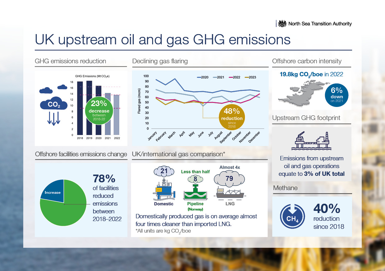 Last year’s estimated 3% reduction contributed to a 23% drop in greenhouse gas emissions between 2018 and 2022, according to the latest Emissions Monitoring Report from the North Sea Transition Authority (NSTA).