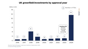 Oil and gas investments in the UK have not recovered in the same way as in Norway. It is expected that 2023 investments will be around 75% lower than 2013, when investment peaked at nearly £18 billion ($22.7 billion). With many developments in the pipeline, however, next year could see the highest number of projects sanctioned in a decade. While three to five projects are sanctioned, on average, in the UK each year, 2024 could see up to 14 new oil and gas fields given the green light.
