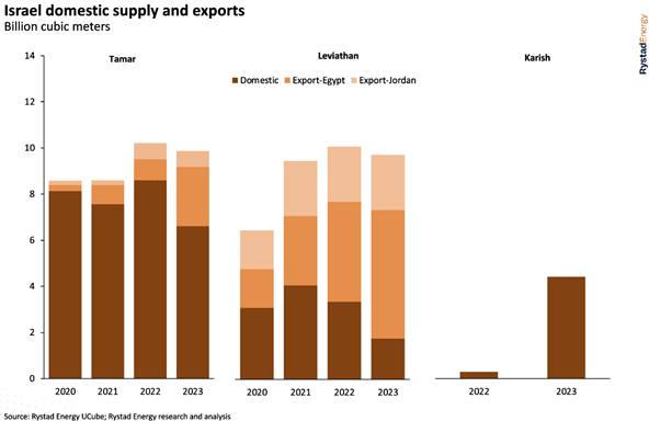 This agreement defined each country's rights over the Karish and Qana fields, with Israel retaining full rights to Karish and Lebanon to Qana. We anticipate that escalating tensions could lead to the nullification of this agreement, affecting Israel's production from the Karish field, which is currently used for domestic supply. This disruption may also impact Israel's gas exports to Egypt and Jordan, which saw significant growth in 2023.