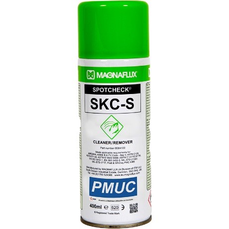SKC-S is an NDT-approved solvent cleaner/remover for pre-cleaning before non-destructive testing and for removing excess surface penetrant from an inspection area before applying developer during liquid penetrant testing.