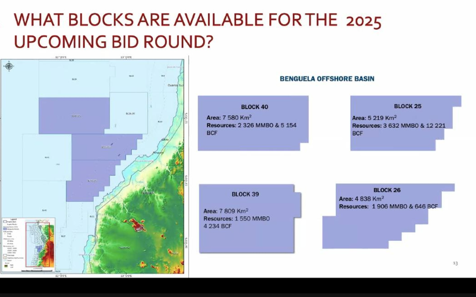 Angola’s 2025 limited tender will feature Block 40, Block 25, Block 39 and Block 26 in the Benguela basin as well as Block 22, Block 35, Block 37, Block 38 and Block 36 in the Kwanza basin.