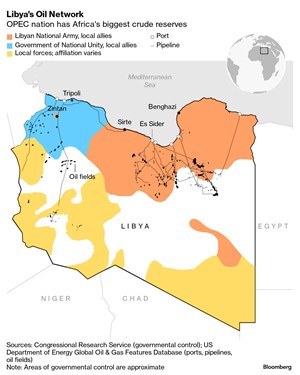 While the government in western Libya has global recognition, its eastern rival has the backing of Khalifa Haftar, the leader of the self-styled Libyan National Army that’s the nation’s most powerful combat force and controls swathes of the east and south.