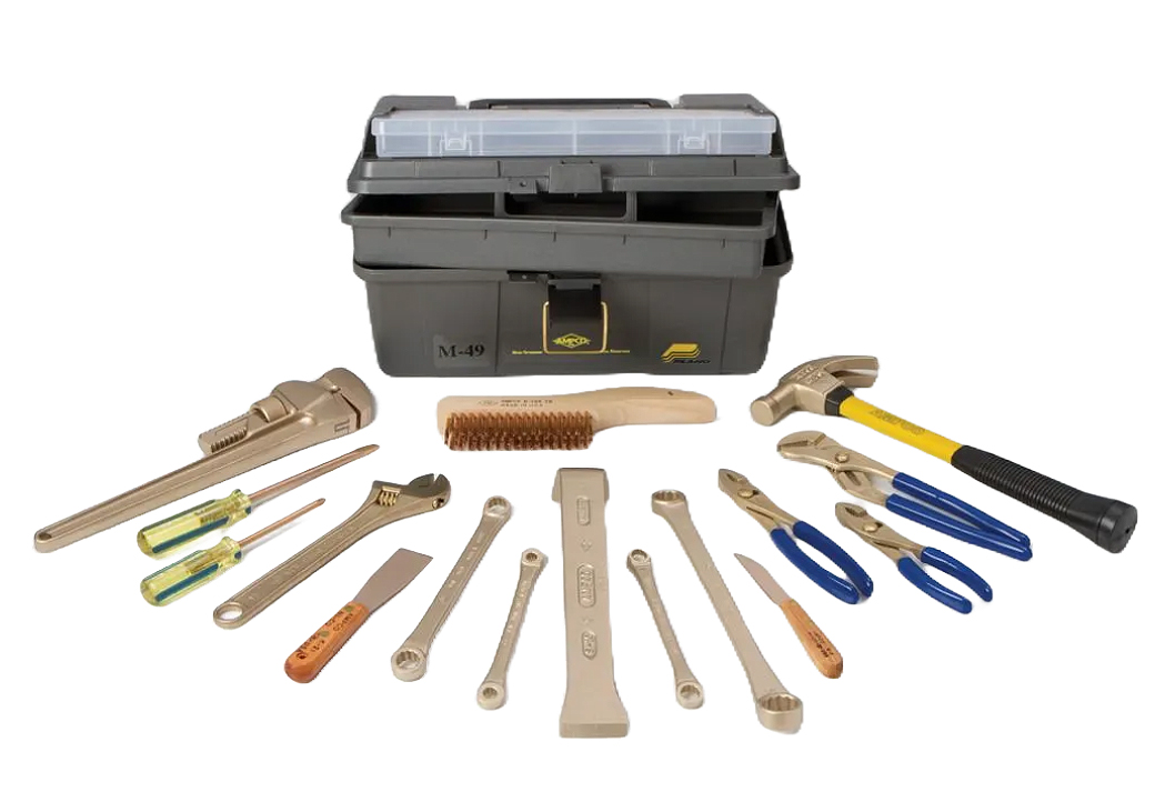 Working with steel tools can generate sparks, which can ignite gas-air mixtures leading to explosions. In areas where such mixtures are present, flammable sparks can be catastrophic, and must be strictly avoided. Non-sparking tools are designed to prevent spark generation during use, making them essential for performing maintenance, repairs, and operations in environments with flammable vapors, gases, or dust. Non-sparking tools help avoid accidental ignitions, reducing harmful injuries and disasters that often result in costly interruptions to workflow.