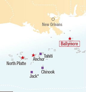 The Ballymore field holds an estimated 150 million barrels of oil equivalent in potentially recoverable resources over its project life. The development sits in about 6,600 feet (2,000 meters) of water.