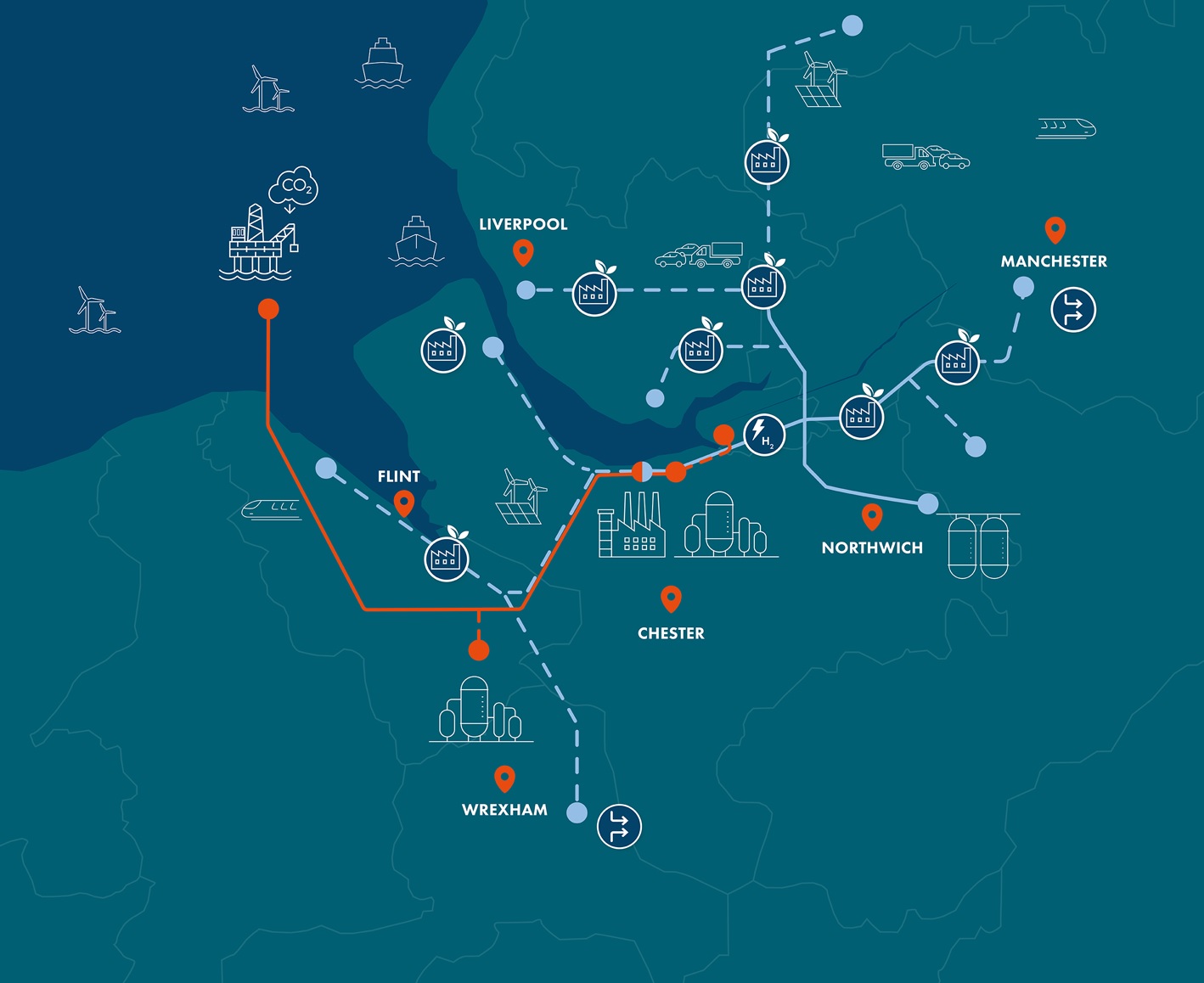 The Liverpool Bay CCS project will operate as the backbone of the HyNet Cluster to transport carbon dioxide from capture plants across the North West of England and North Wales through new and repurposed infrastructure to safe and permanent storage in Eni’s depleted natural gas reservoirs, located under the seabed in Liverpool Bay. The project itself foresees the efficient repurposing of part of the offshore platforms as well as 149km of onshore and offshore pipelines, and the construction of 35km of new pipelines to connect industrial emitters to the Liverpool Bay CCS network.