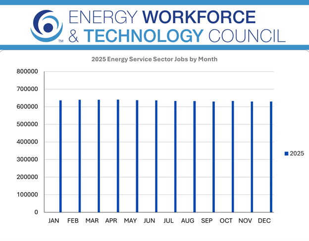 Energy services employment totaled 629,372 jobs in December, down 184 positions from November, according to preliminary data from the Bureau of Labor Statistics and EWTC analysis. The December figures cap a year in which employment peaked at just over 640,000 jobs in April before trending lower through the second half of 2025.