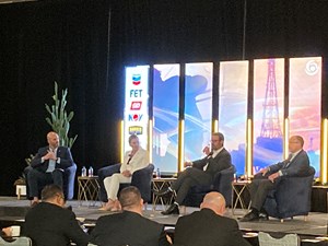 Onshore panel. Later on Wednesday morning, the Onshore Operators Panel (Fig. 2) featured three U.S. operators, including Sarah Fenton, Executive V. P., Upstream at EQT; Jamie Bernard, President of SOGC, LLC (formerly known as Sinclair Oil & Gas Company); and Chad McAllaster, Executive V.P., Operations, Diamondback Energy. The moderator was Sam Sledge, Director & CEO, ProPetro.
