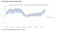 Corporate energy consumption was down 40% at the peak of the Covid-19 crisis but the latest figures (to 21st July) are only 8% below the level they were just prior to lockdown. There has been a sharp rise in the past two weeks as restrictions have relaxed and more people have returned to work.